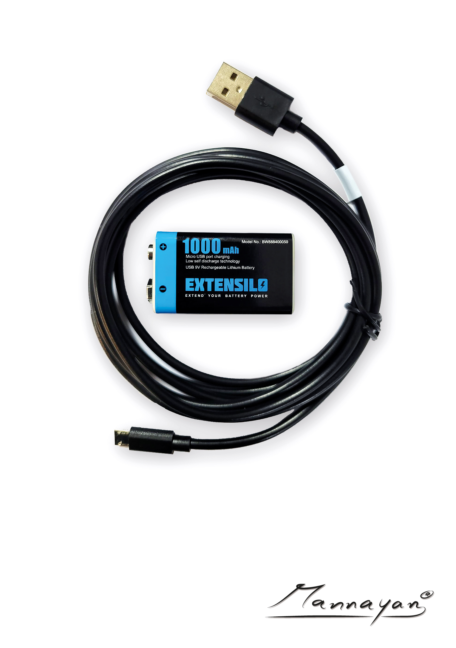 9 Volt Lithium Ionen Akku + USB Ladekabel.